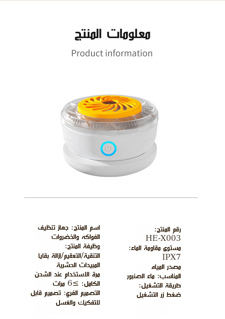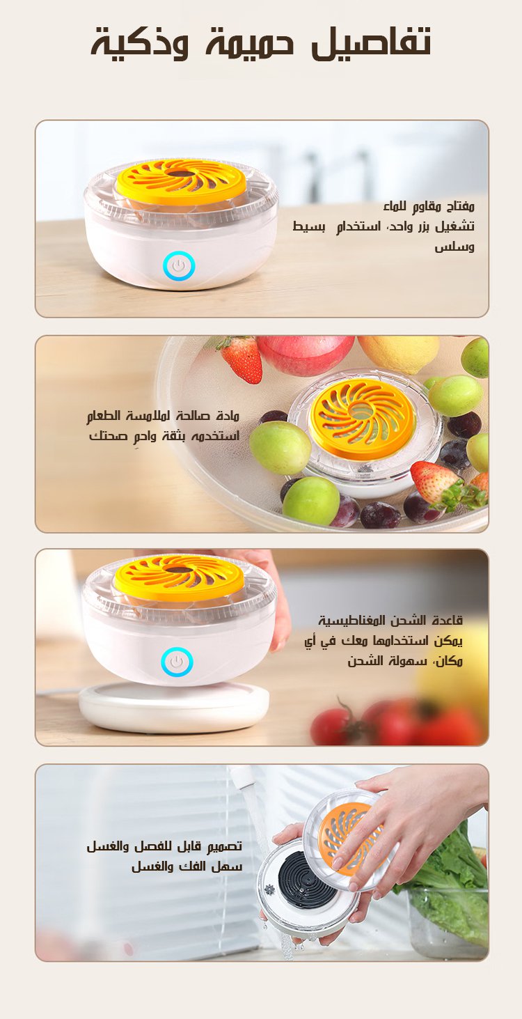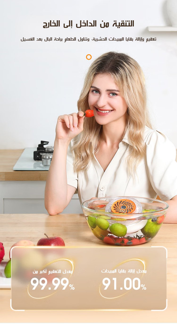 HFH-منظف فواكه وخضروات بالموجات فوق الصوتية اللاسلكي (يزيل 99.99٪ من الجراثيم)